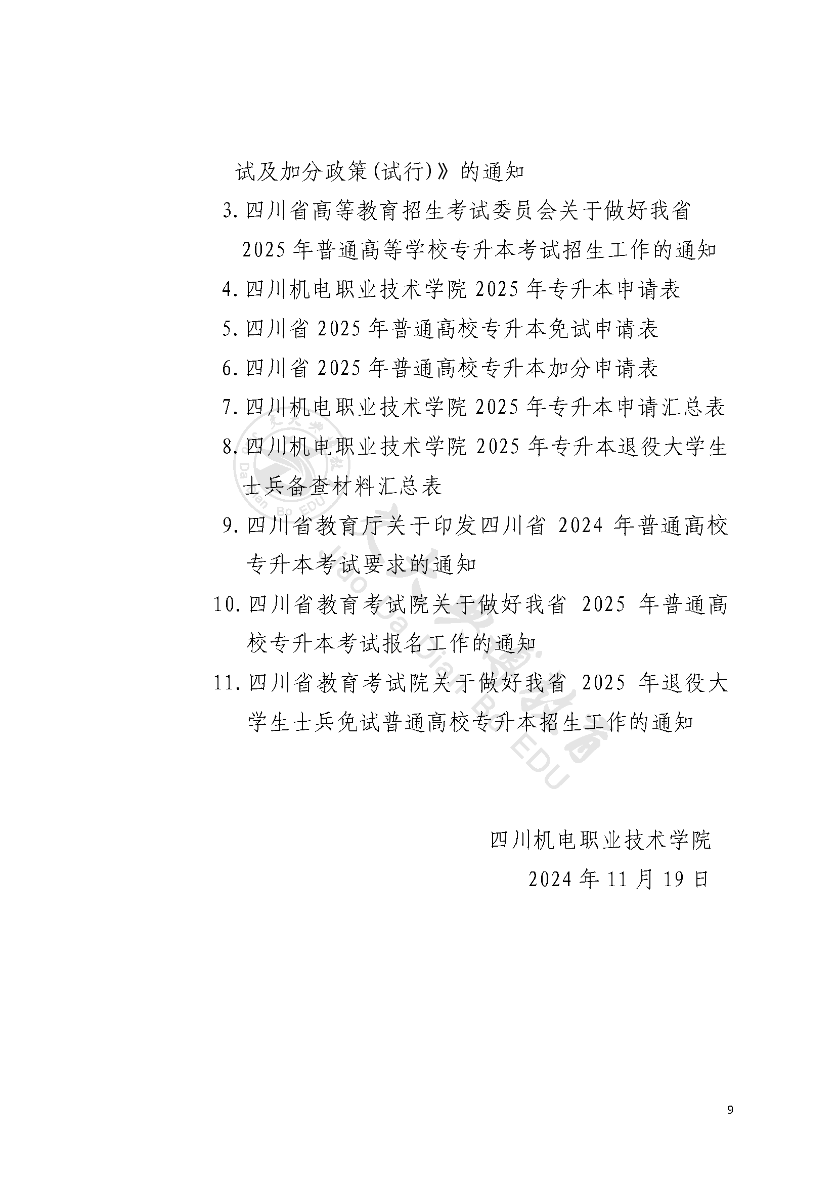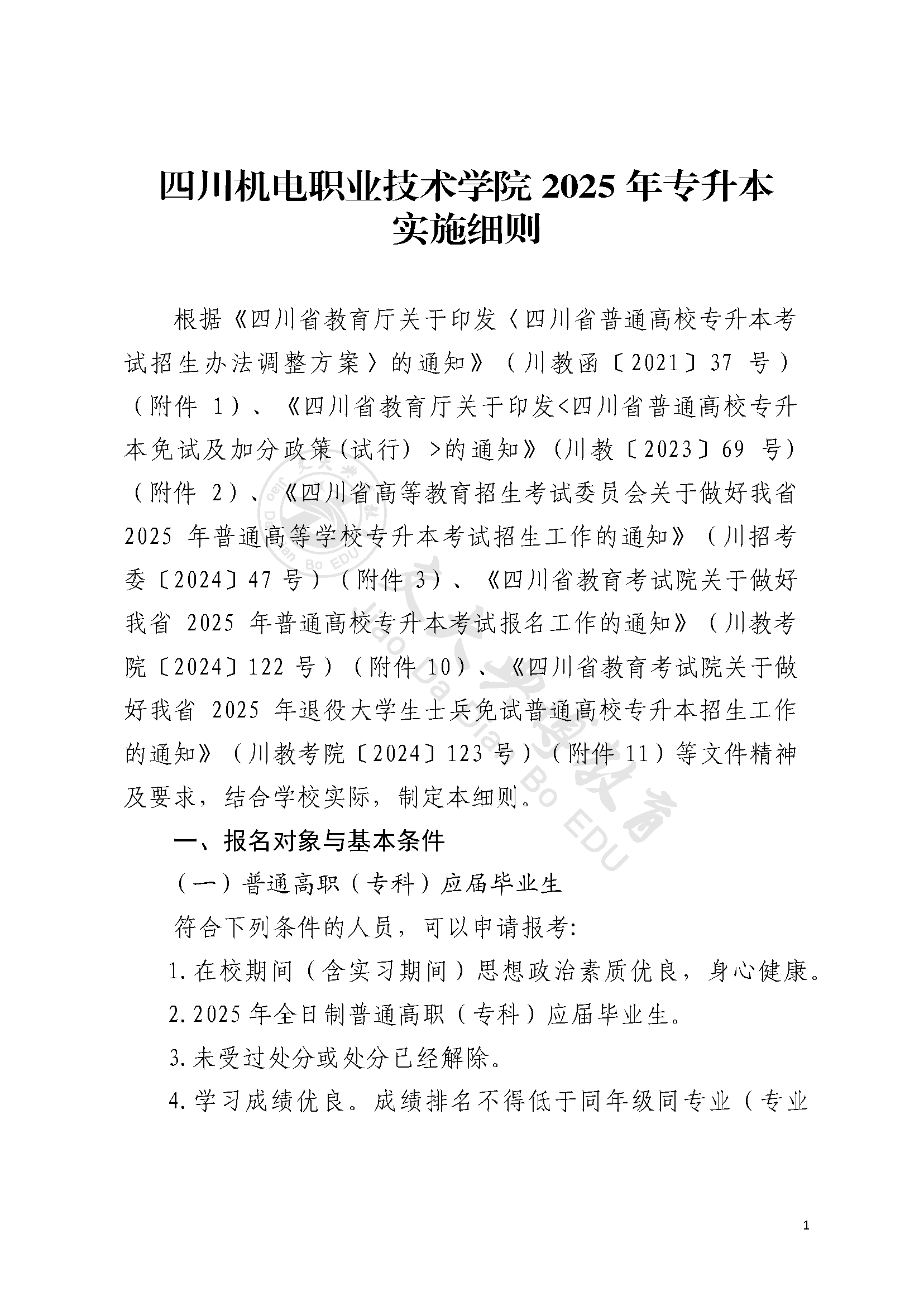 四川机电职业技术学院2025年专升本实施细则