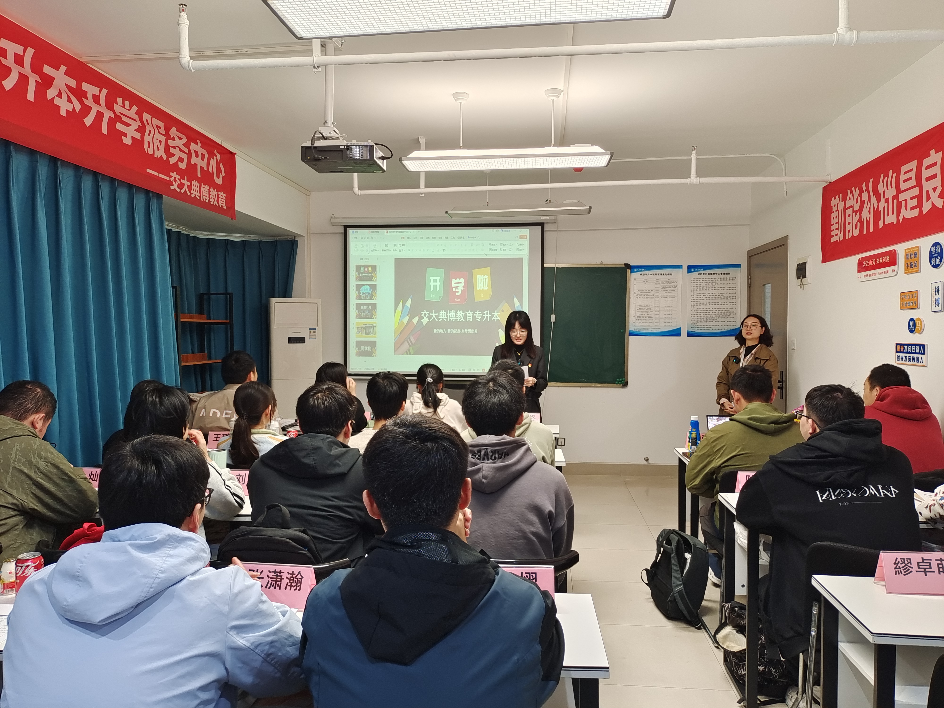 2024年11月12日上午,交大典博教育在西南交通大学九里校区顺利开展统招专升本考前集训开学第一课,迎接新同学的到来,为他们即将开始的学习生活做好充分准备。