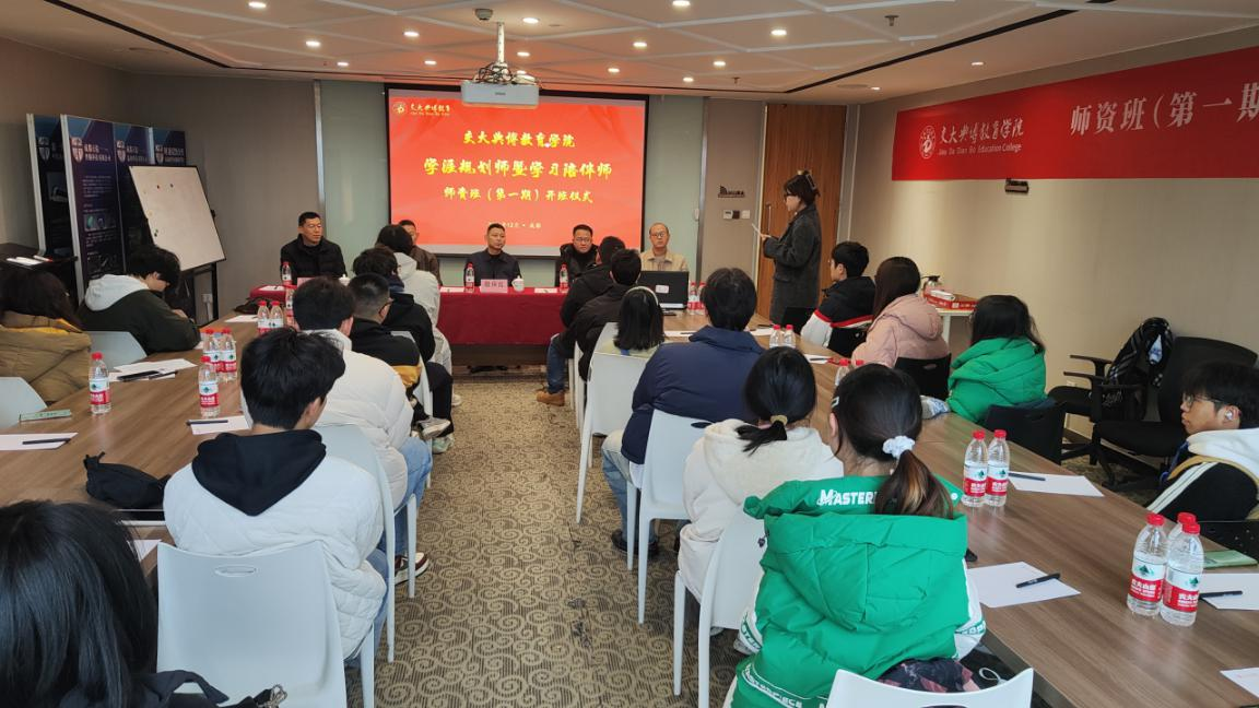 2024年12月8日,交大典博教育学院在西南交通大学九里校区成功举办了学涯规划师暨学习陪伴师师资班(第一期)开班仪式。出席仪式的有交大典博教育集团董事长敬保官、总裁黄河,交大典博教育学院名誉副院长魏云,西南交大心理中心马老师,以及交大典博教育集团业务骨干。仪式由黄彦允女士主持。